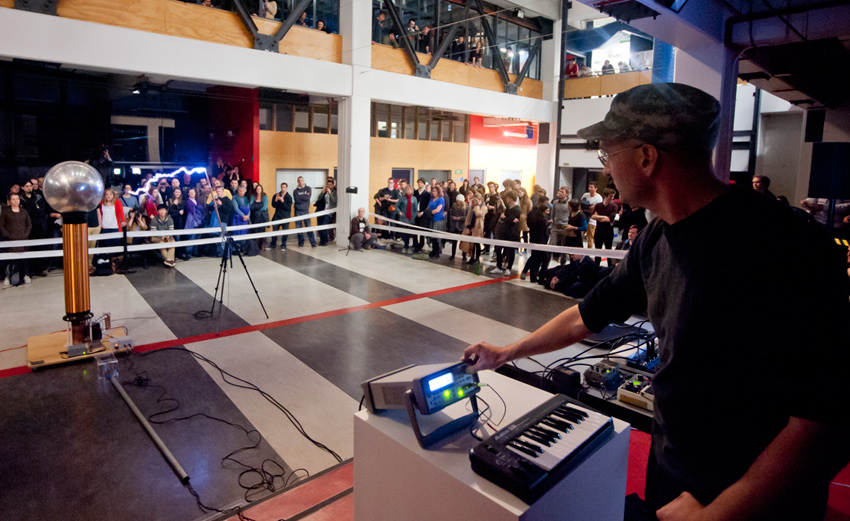 Victoria's School of Design invites you to a demonstration of PYRAMIDER, a Tesla coil capable of multi-metre electrical arcs and physical